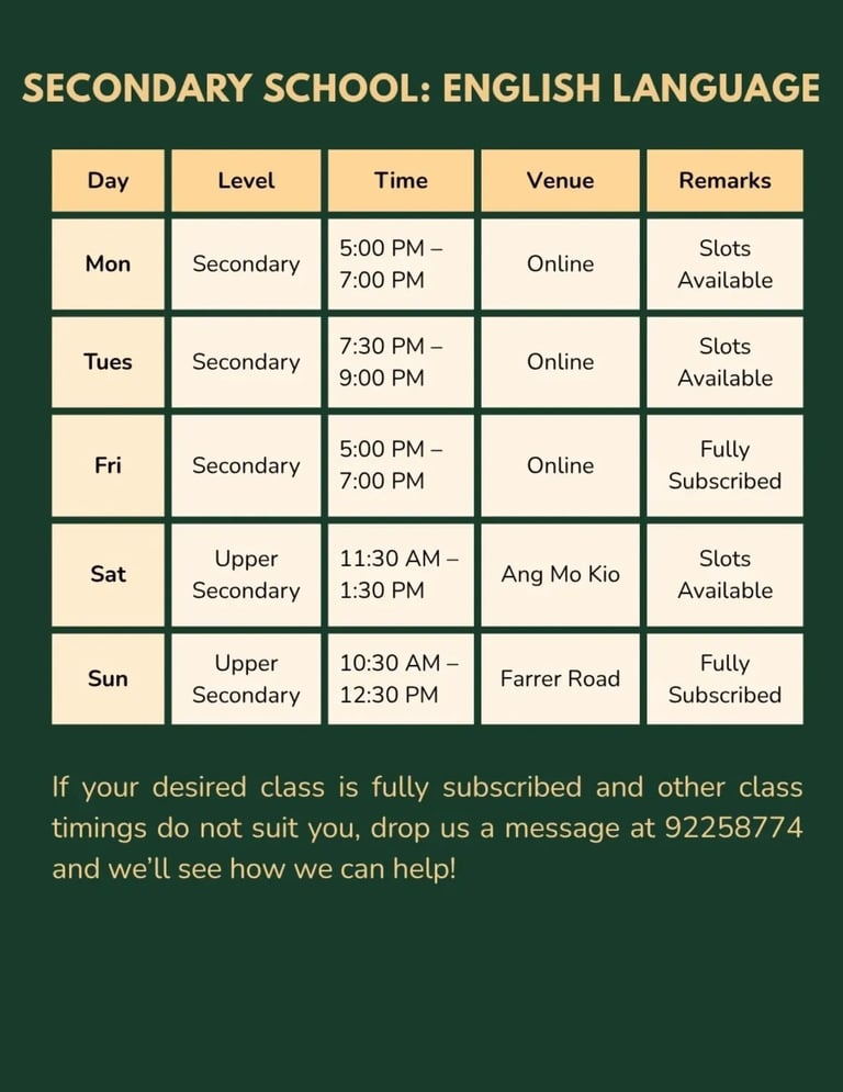 Teacher Michelle is truly an exceptional educator. She pushes her students to do their very best and never gives up on them. She's a well prepared teacher who knows exactly how to handle challenges in the classroom. Under her guidance, I improved from a "just pass" to a B3 in less than 6 months for my N-Levels, something I thought I could never achieve I'm really grateful for her dedication, patience and the way she brings out the potential in her students. Highly recommend her to anyone looking for a committed and effective teacher!